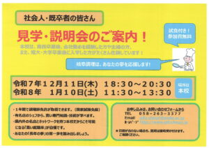 〒500-8856 岐阜市橋本町1-10-1 アクティブG 2階 岐阜調理専門学校